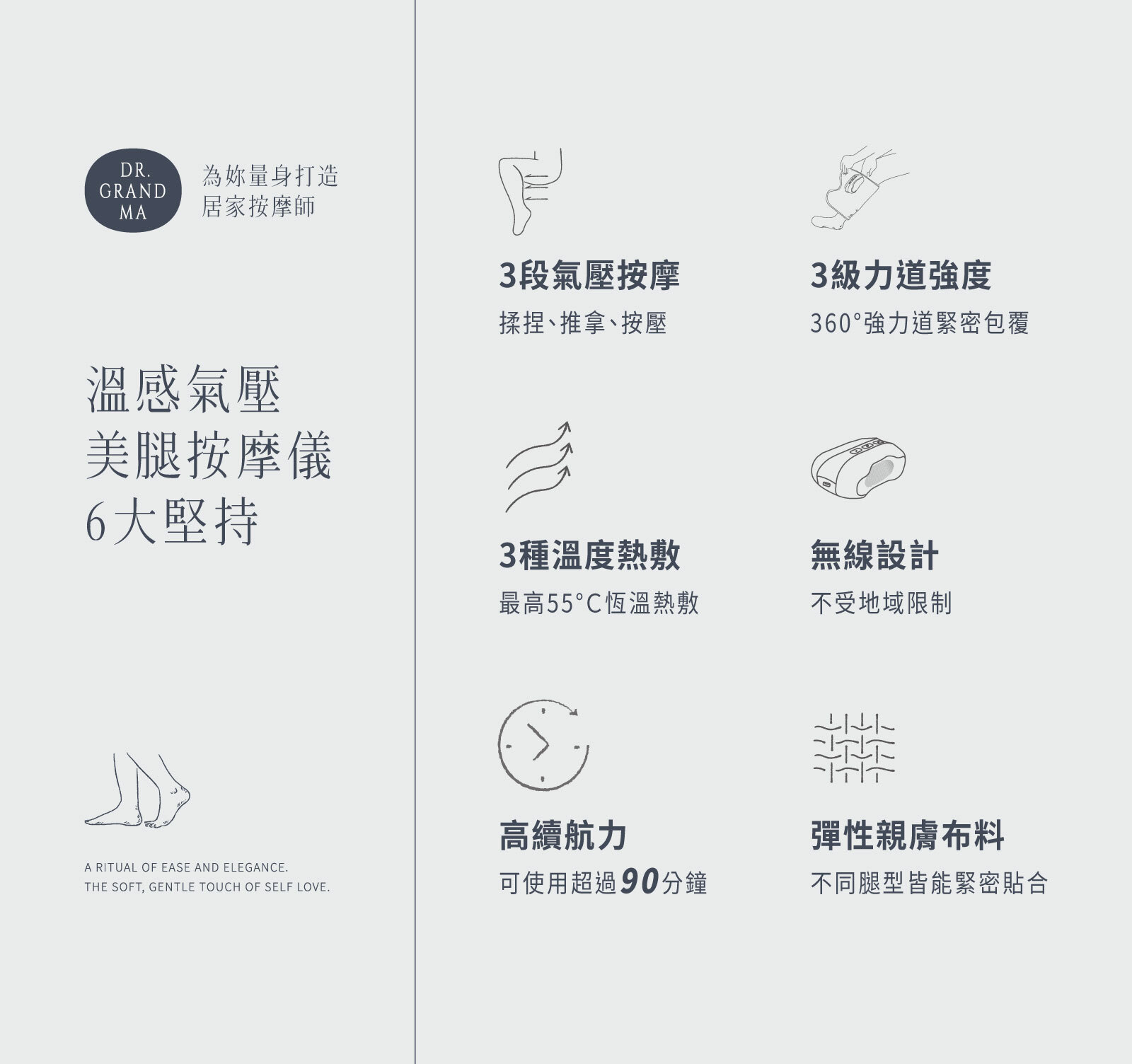 360°溫柔包覆妳的疲勞雙腿