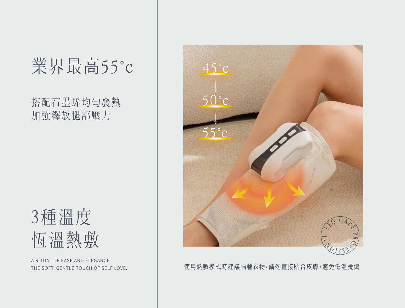 ・3種溫度熱敷,最高55°C恆溫熱敷