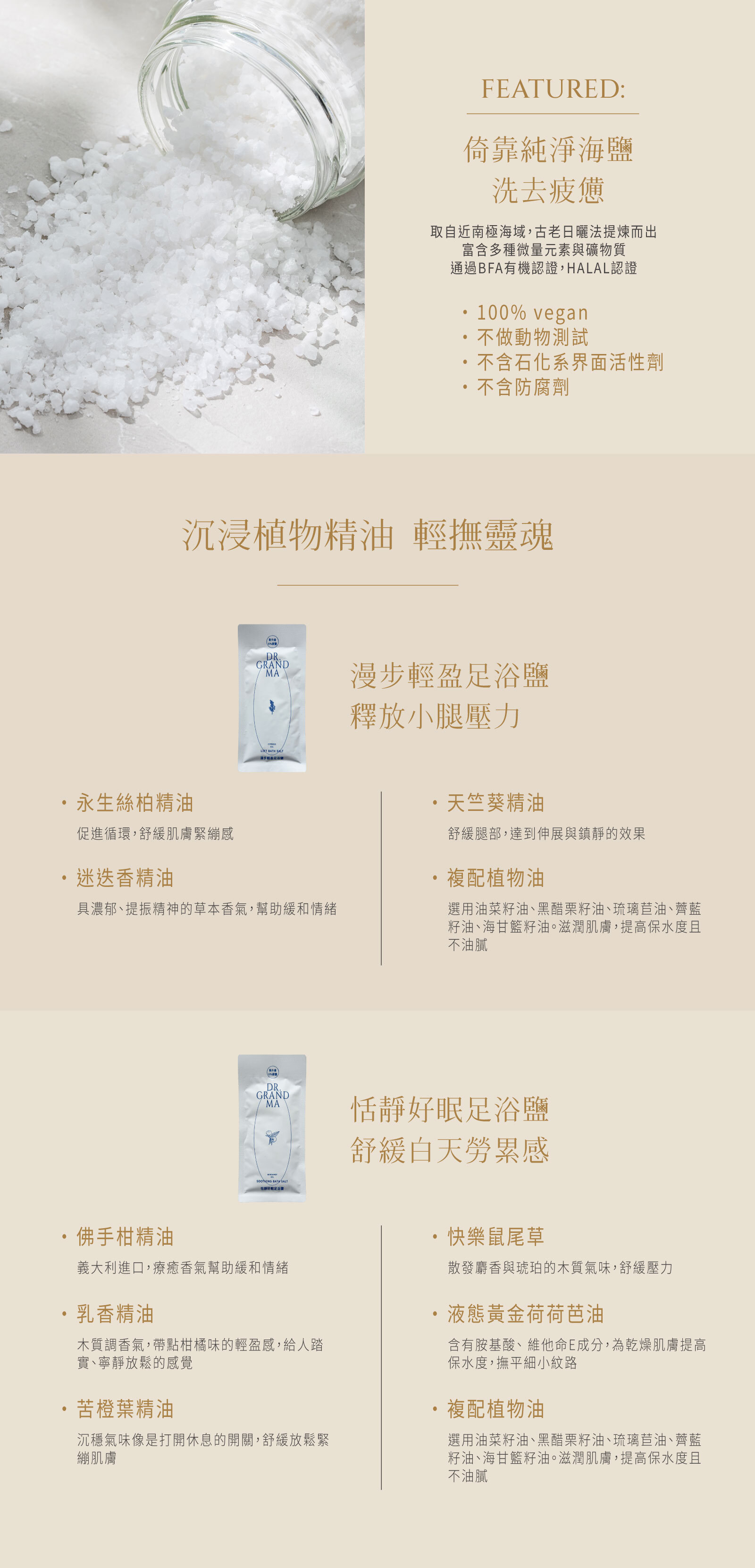 ◆漫步輕盈,蠶豆症者不得使用。恬靜好眠,孕婦不得使用。(足浴鹽皆含精油,如體質敏感者、孕婦,請使用前先諮詢醫師。