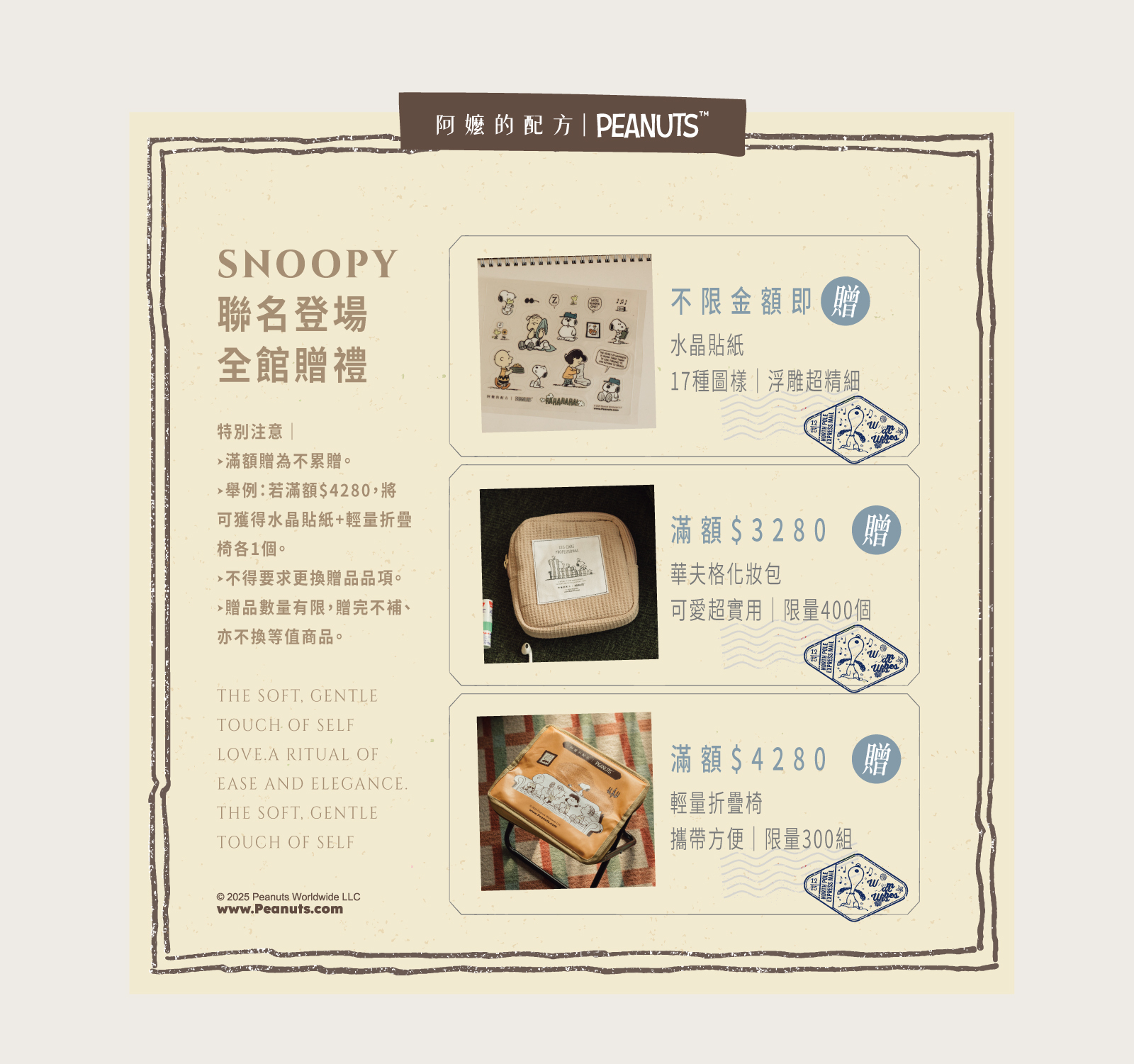 至2025-12-30T04:00:00.000+00:00截止 全店,SNOOPY聯名|滿額禮($3280/$4280 兩門檻不累贈)