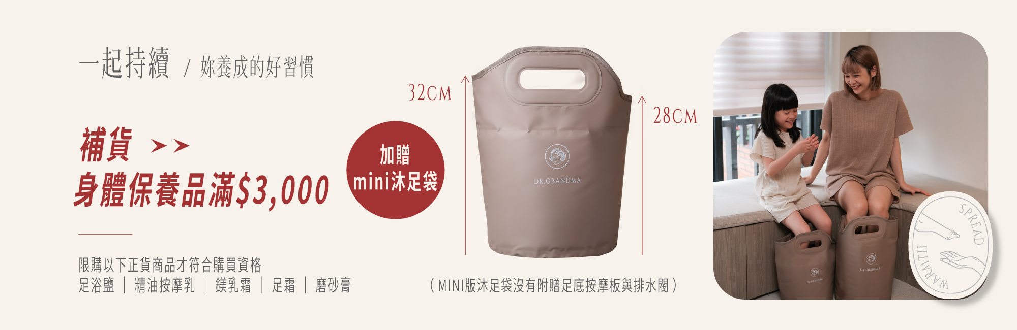 指定品項滿$3000,贈小足浴袋(限量)